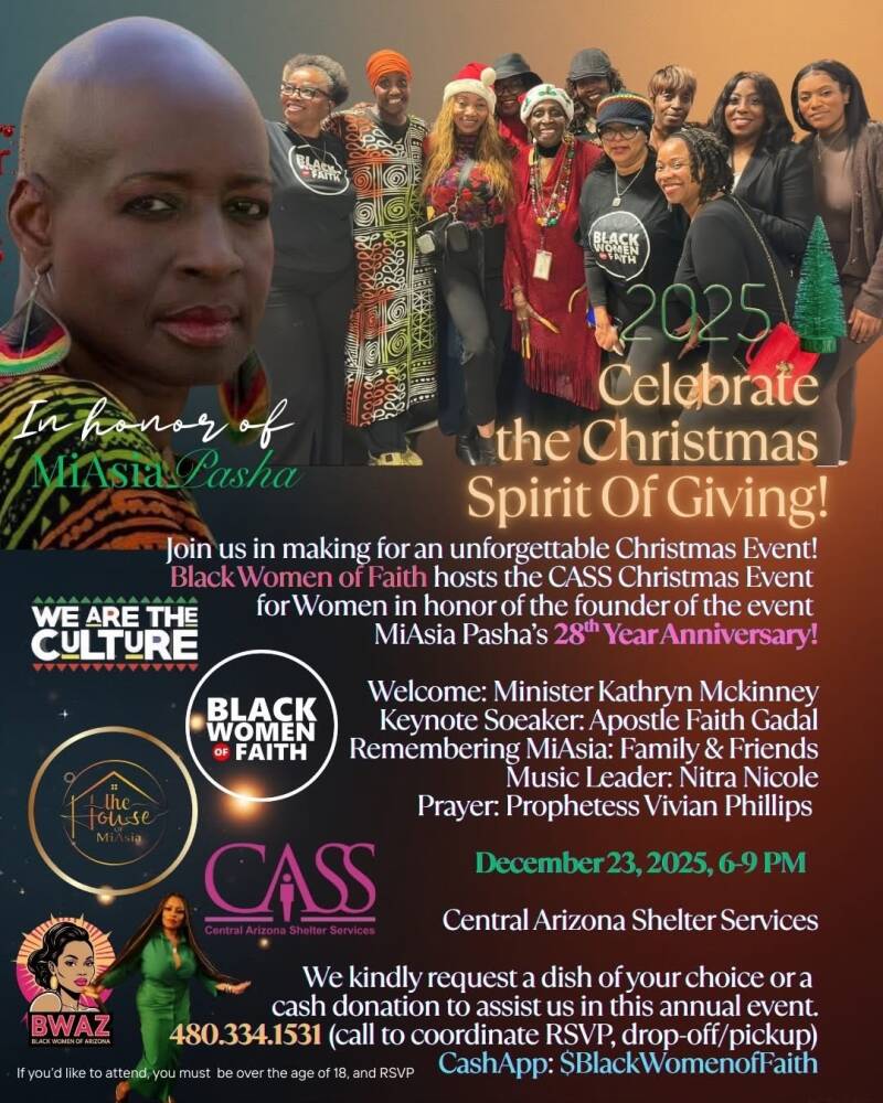 Forget the mistletoe, we’re focusing on impact! The Black Women of Arizona and Black Women of Faith are coming together for a purposeful Christmas meet-and-greet. Grab your sassiest festive fit and let’s outline how we’re going to run 2026, one volunteer and financial opportunity at a time!
